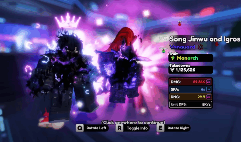 Anime Vanguards là tựa game tower defense nổi tiếng trên Roblox, nơi người chơi triệu hồi các nhân vật mạnh mẽ từ các anime để bảo vệ căn cứ trước làn sóng kẻ thù. Trong số các đơn vị hùng mạnh, Song Jinwu và Igros là bộ đôi Vanguard Mythical đỉnh cao, lấy cảm hứng từ Sung Jinwoo và Igris trong anime Solo Leveling. Với khả năng triệu hồi bóng tối và sát thương vượt trội, bộ đôi này là lựa chọn hàng đầu để chinh phục các thử thách khó nhất như Ant Island Raid hay Infinite Leaderboards.