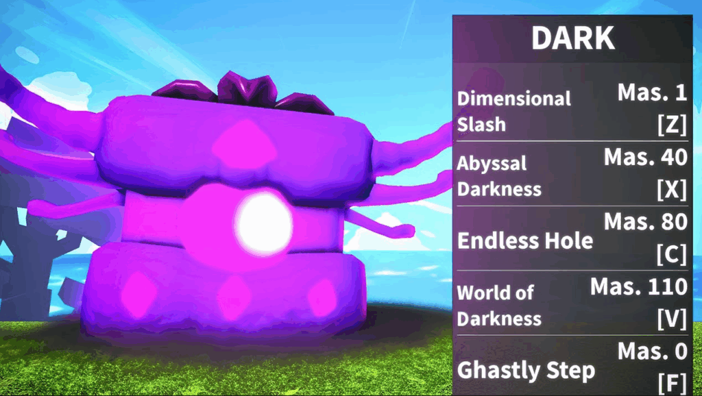 - Dimensional Slash (F, 25 Mastery, chỉ Awakened): Teleport nhanh, tránh tấn công và stun kẻ thù gần đó.