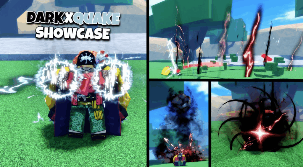 DarkXQuake là trái ác quỷ Mythical được thêm vào trong bản cập nhật 15 của Fruit Battlegrounds. Đây là sự kết hợp giữa hai trái ác quỷ Quake (Gura Gura no Mi) và Darkness (Yami Yami no Mi), dựa trên sức mạnh của Râu Đen trong One Piece. Khi đạt cấp độ tối đa (level 300), người chơi sẽ nhận danh hiệu “The True Menace”. Các đặc điểm nổi bật của DarkXQuake: