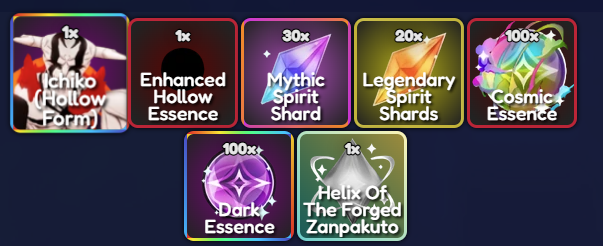 Ichiko là unit dựa trên Ichigo Kurosaki, nhân vật chính của Bleach, với nhiều dạng tiến hóa từ Rare đến Celestial. Mỗi dạng mang lại sức mạnh và vai trò khác nhau, từ DPS (sát thương) đến hỗ trợ trong các chế độ như Story Mode, Infinite Mode, và Raids. Dưới đây là các dạng của Ichiko và thông tin cơ bản: