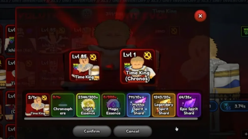 - Nhấn nút Evolve từ menu thả xuống và xác nhận để tiến hóa thành Time King (Chronos).