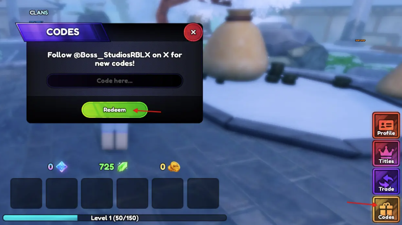 - Theo dõi @Boss_StudioRBLX trên X: Nhà phát triển thường chia sẻ mã code qua tài khoản X chính thức.