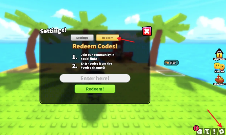 Nhập mã code trong Build An Island rất đơn giản, chỉ mất vài giây để nhận thưởng. Thực hiện theo các bước sau: