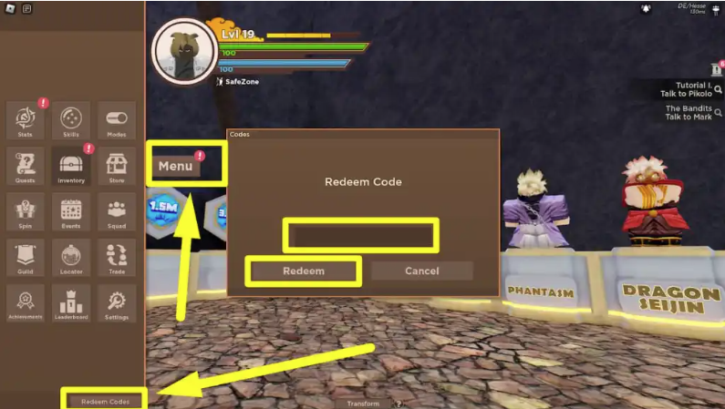 Nhập code trong Dragon Blox rất đơn giản, nhưng bạn cần biết vị trí nút Redeem Code vì nó hơi ẩn. Dưới đây là hướng dẫn chi tiết:
