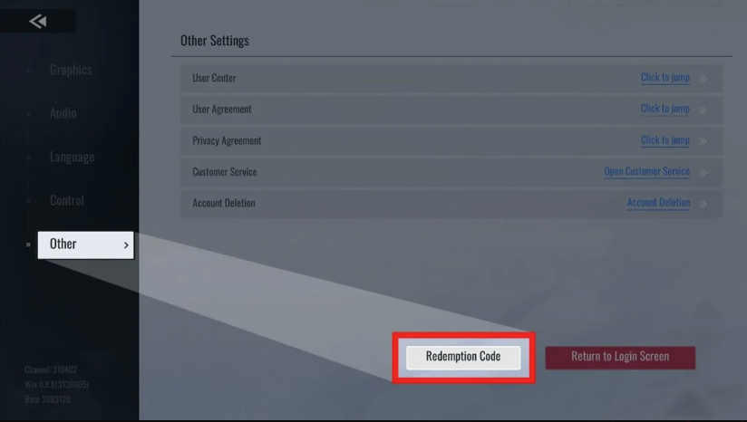 - Tìm Redeem Code: Chuyển sang tab Other, sau đó nhấn Redeem Code.