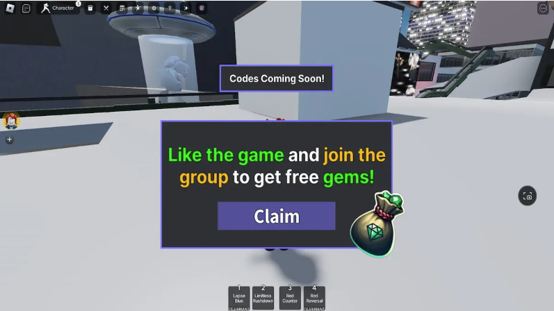 - Farm Gems miễn phí: Tham gia Roblox Group, thích game, và nhấn M trong Lobby để nhận Gems, giúp bạn mua cosmetic hoặc game pass.