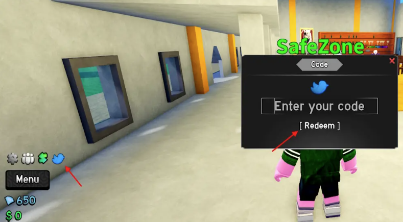 - Tìm nút Codes: Tại giao diện chính (lobby), nhấn vào biểu tượng Twitter bird (Codes) ở phía bên trái màn hình.