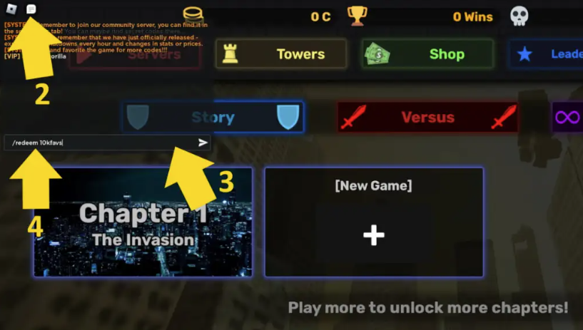 Nhập mã code trong Skibi Defense khác với nhiều game Roblox khác, vì bạn sẽ sử dụng khung chat. Dưới đây là hướng dẫn chi tiết: