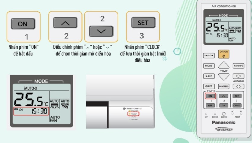 Dựa trên thông tin từ Panasonic Việt Nam và kinh nghiệm thực tế, đây là cách hẹn giờ điều hòa Panasonic chi tiết từng bước: