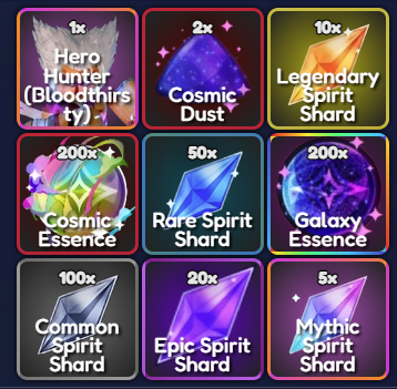 - 2x Cosmic Dust (mua tại Survival Shop bằng cách chơi Survival Mode).