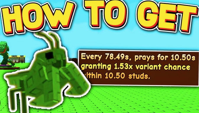 - Khả năng: Mỗi 80 giây, Praying Mantis “cầu nguyện” trong 10 giây, tăng tỷ lệ đột biến của cây trồng trong phạm vi 10 studs lên 1.5 lần. Khả năng này áp dụng cho mọi loại đột biến, từ Big (1.5x) đến Rainbow (50x) hay Celestial (120x).