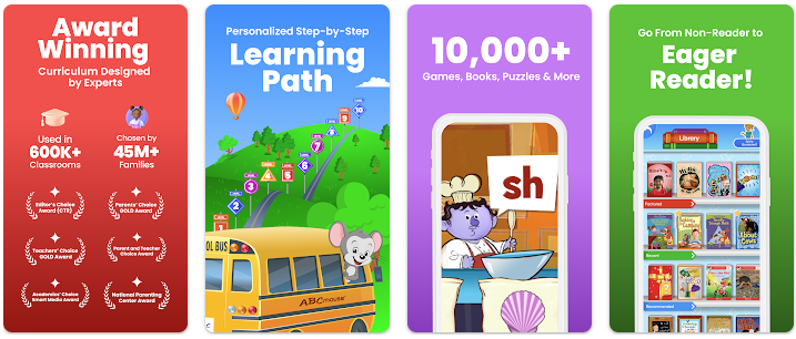 ABCmouse là một trong những app giáo dục cho trẻ 3-6 tuổi được yêu thích nhất trên toàn cầu. ABCmouse là app học tập cho trẻ có hơn 10 triệu lượt tải xuống đủ thấy sức hấp dẫn của ứng dụng này. Với hàng nghìn hoạt động học tập tương tác, ứng dụng này giúp trẻ học bảng chữ cái, số học, màu sắc, và kỹ năng đọc cơ bản. Giao diện của ABCmouse đầy màu sắc, âm nhạc vui nhộn, khiến trẻ cảm thấy như đang chơi thay vì học.