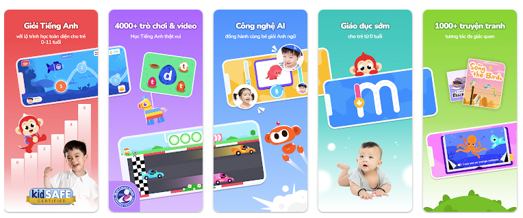 Tổng quan: App Việt Nam, dạy tiếng Anh qua câu chuyện, bài hát, rất phổ biến với phụ huynh Việt.