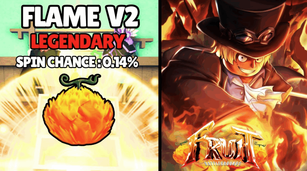 Flame V2 là phiên bản thức tỉnh của trái Flame, thuộc nhóm Legendary trong Fruit Battlegrounds. So với Flame cơ bản, Flame V2 có các chiêu thức nâng cấp như Fire Fist V2 và Crimson Howl, với sát thương cao hơn, tầm đánh rộng hơn, và khả năng air-camp (tấn công từ trên không), cực kỳ hiệu quả trong PvP. Đây là lựa chọn lý tưởng cho cả người mới và người chơi kỳ cựu nhờ combo dễ thực hiện và sức mạnh vượt trội.